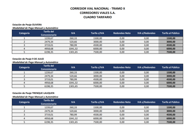 alcanzan a las estaciones de peaje emplazadas en los tramos del I al X de